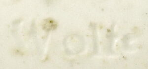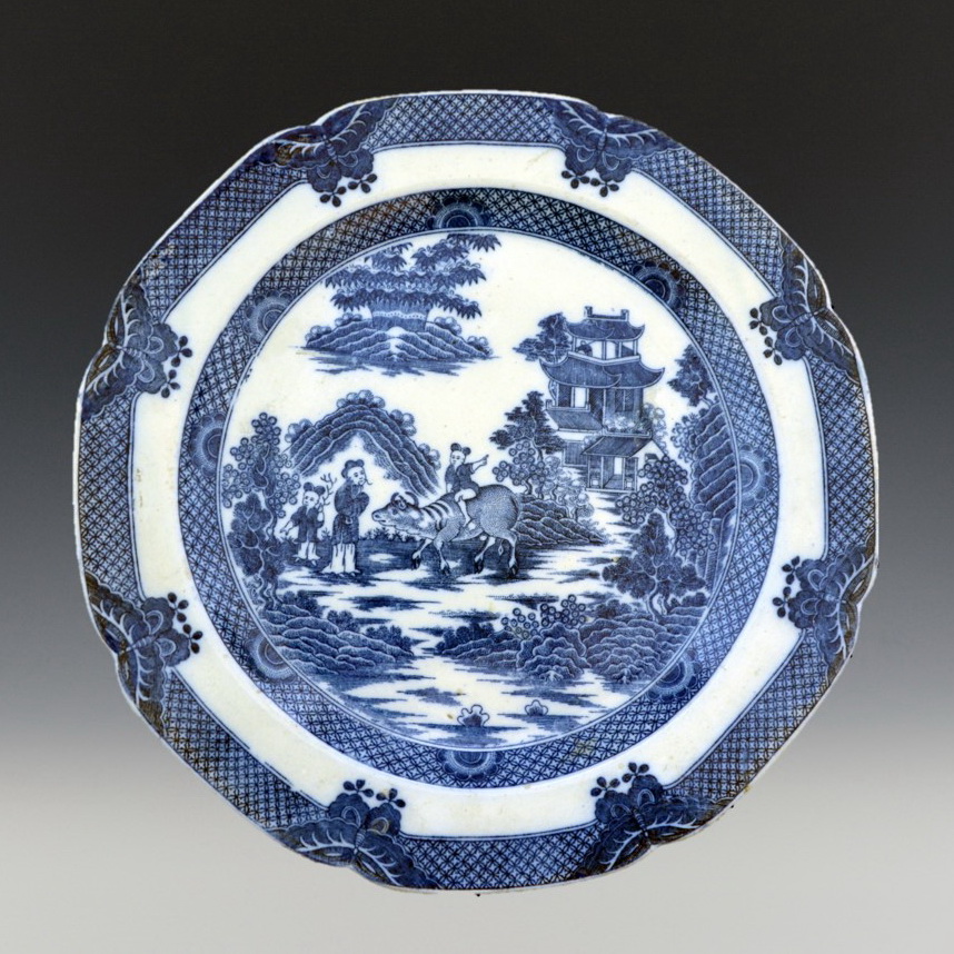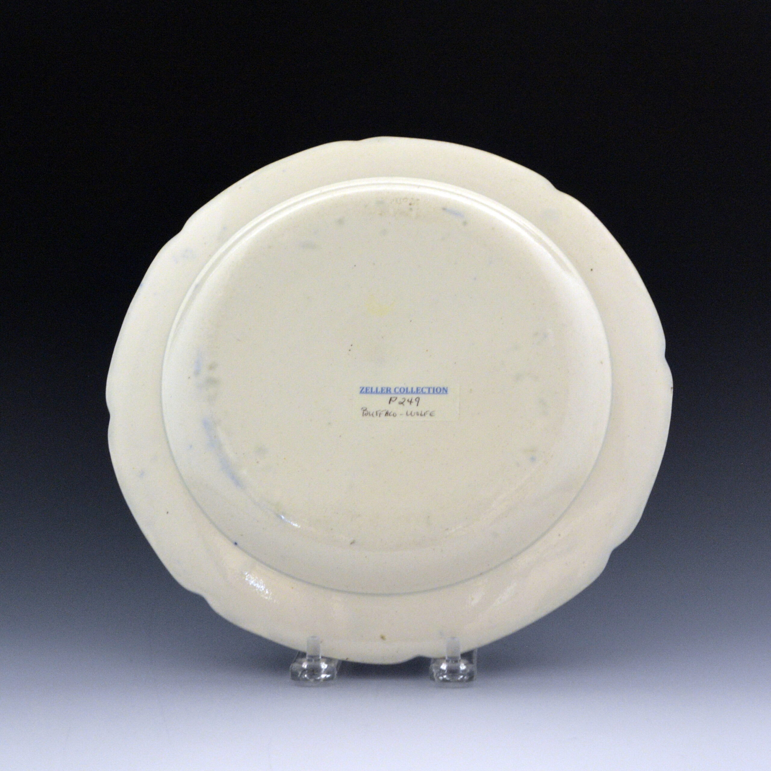 This Buffalo pattern on this plate has an impressed Wolfe mark and is considered rare due to the impressed mark. It predates the 19th century versions. An predominant characteristic of the Wolfe version is the saw tooth-like pattern on the butterfly wings in the border.