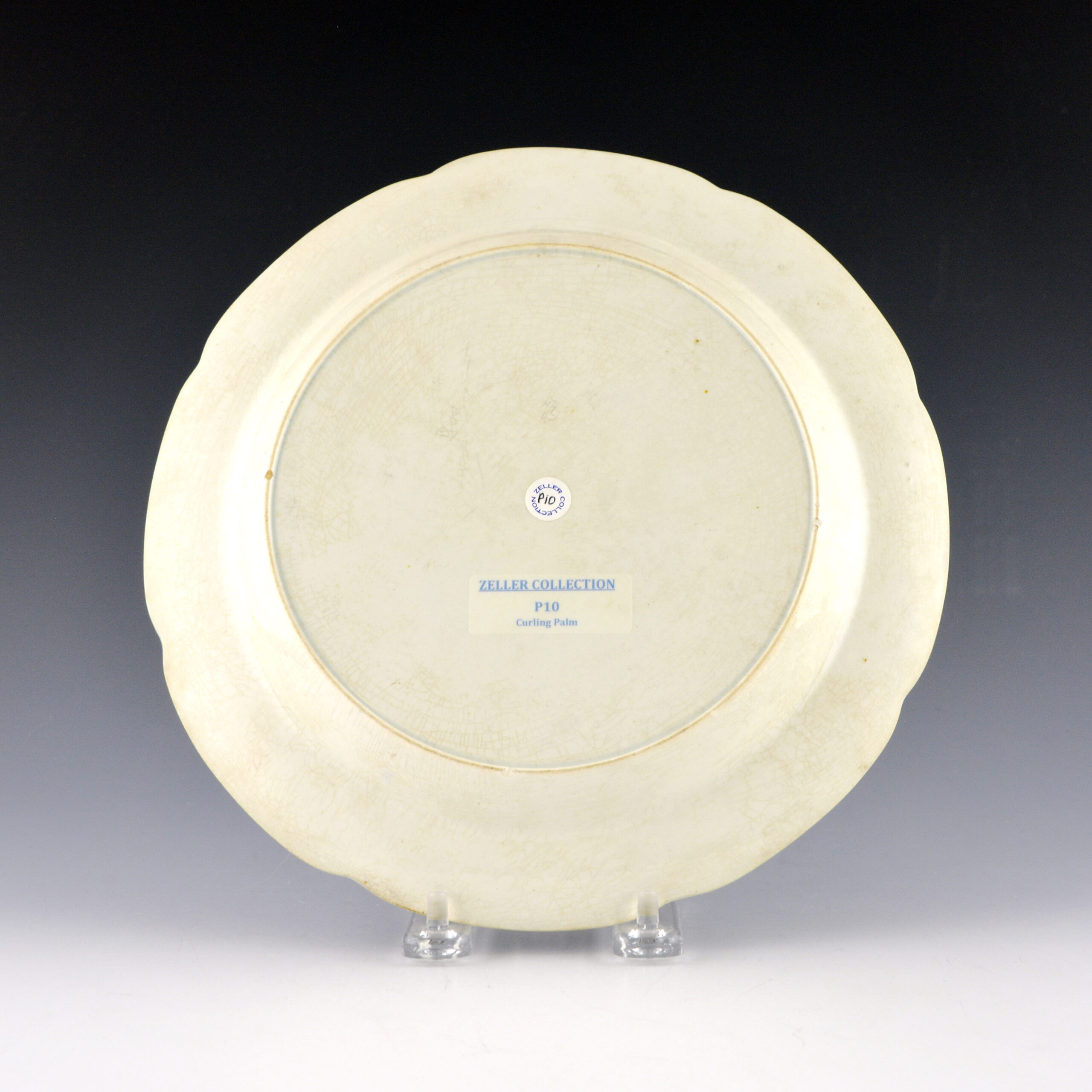 Condition: Good condition with minor discoloring on underside and a small firing mark in the center of the plate.