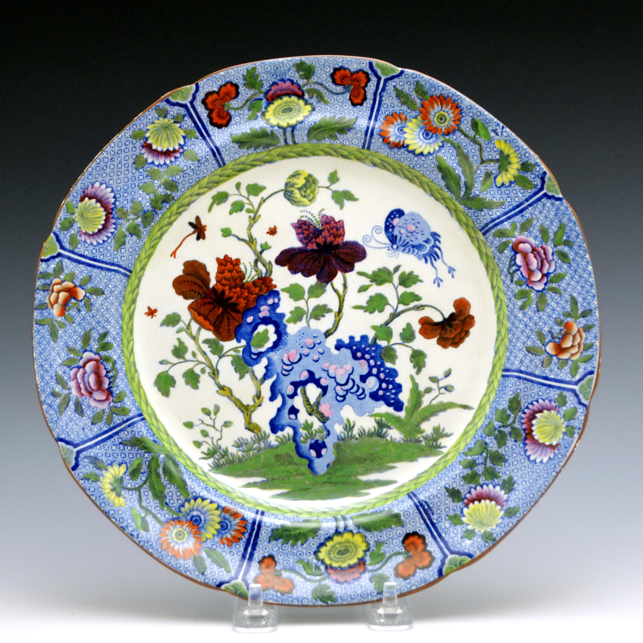 Designed after a Chinese pattern from the K’ang Hsi period, 1700-22. Pattern introduced by Spode c. 1815. In the early 1800s the name “India” was often used to describe oriental style.